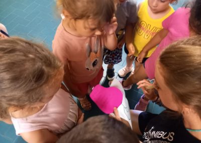 9.00 – 9.30 Con la presenza del Team Educativo, tutti i bambini si riuniscono per il primo momento comunitario. Conversazione di gruppo sull’organizzazione della giornata e avvio dell’attività ludico-creativa cantando l’INNO DEL CENTRO ESTIVO.